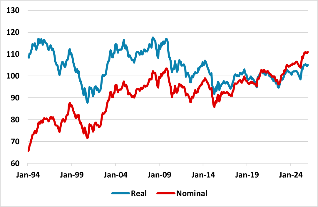 Figure 2: EZ Nominal and Real Exchange Rate (%)