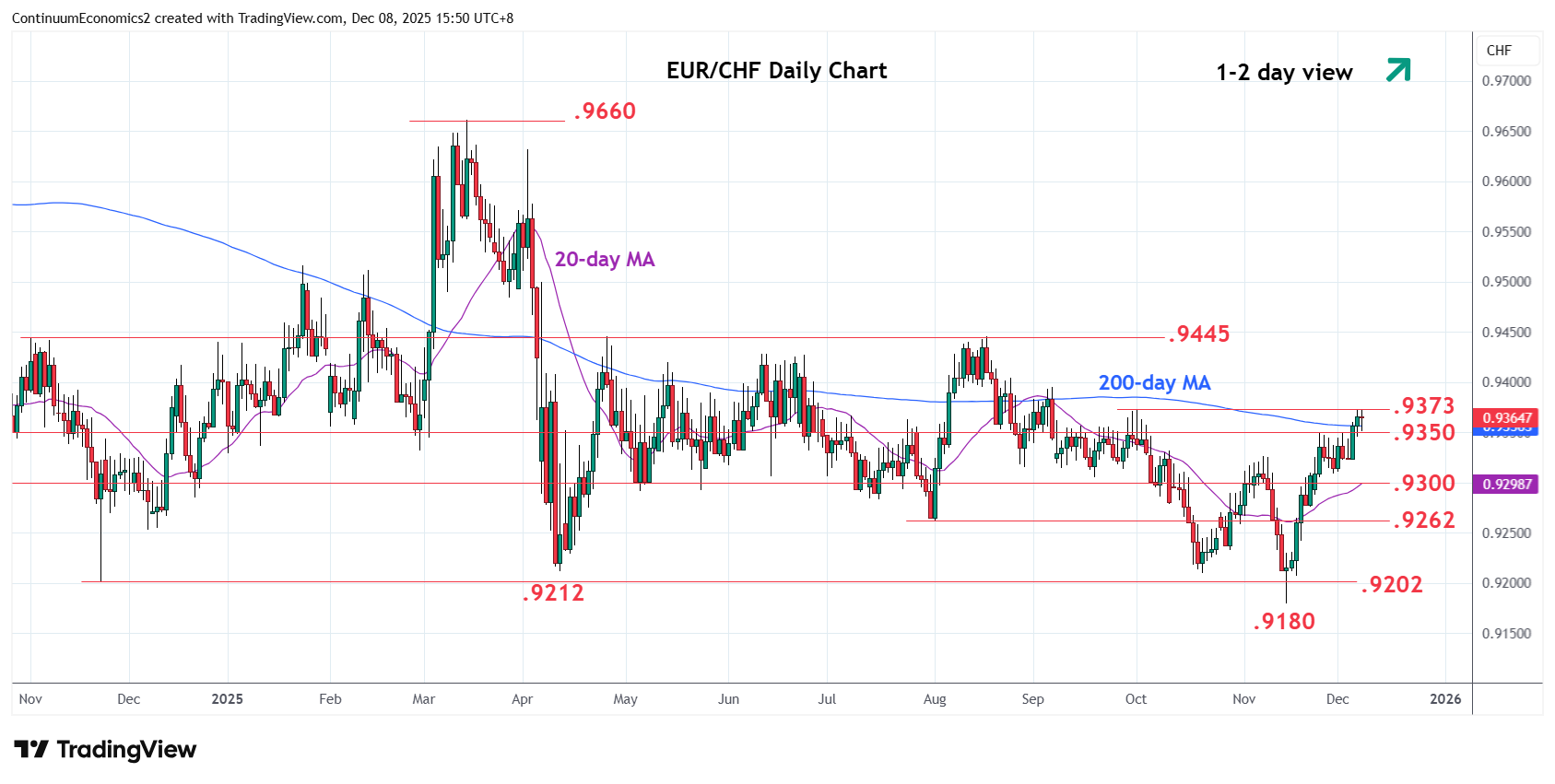 Chart EUR/CHF Update: Pressuring .9373, October high