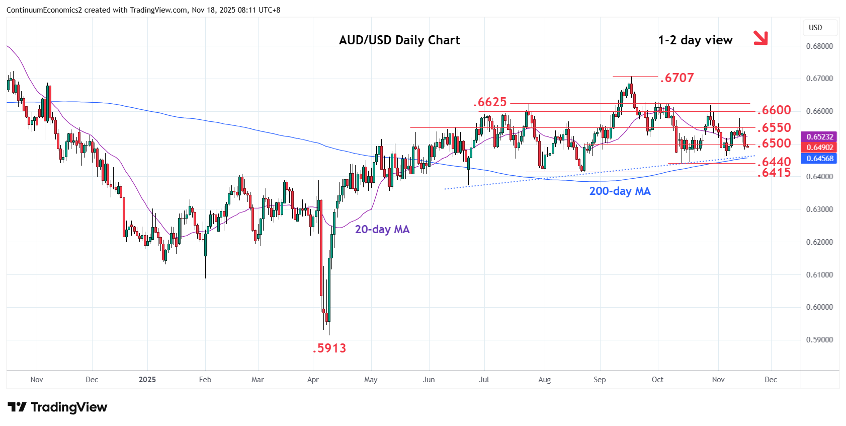 | R4 | 0.6625/30 | ** | Jul, Oct highs | S1 | 0.6458 | * | 5 Nov low | |