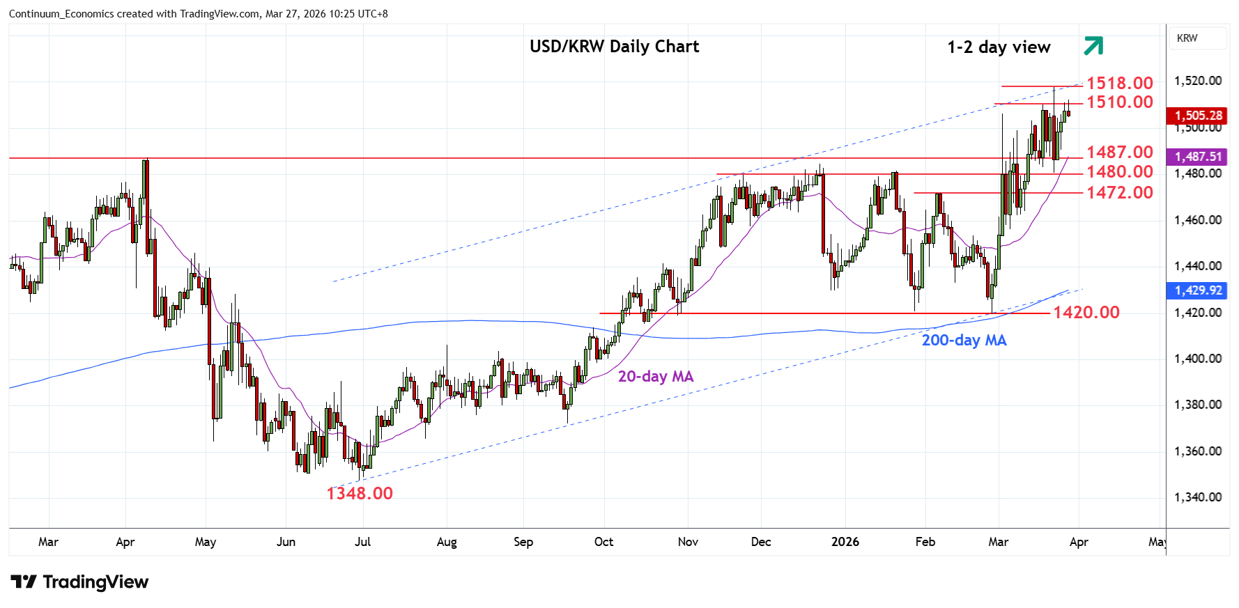Chart USD/KRW Update: Pressuring 1510.00/1518.00 highs
