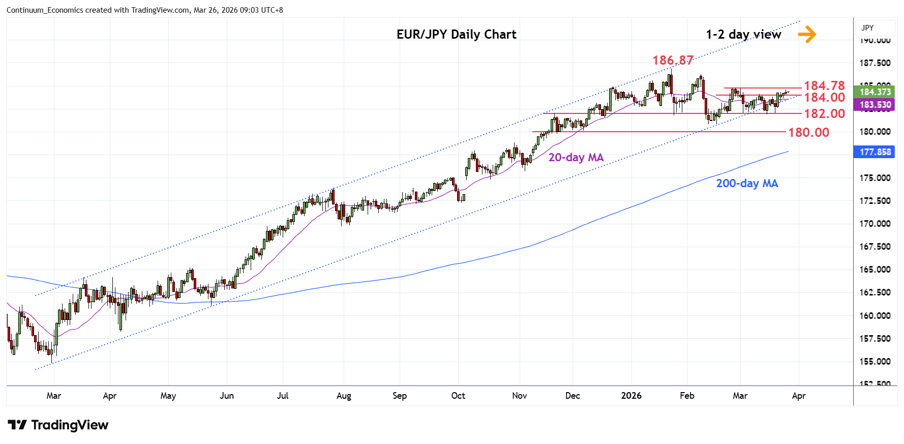 Chart EUR/JPY Update: Edging higher above 184.00