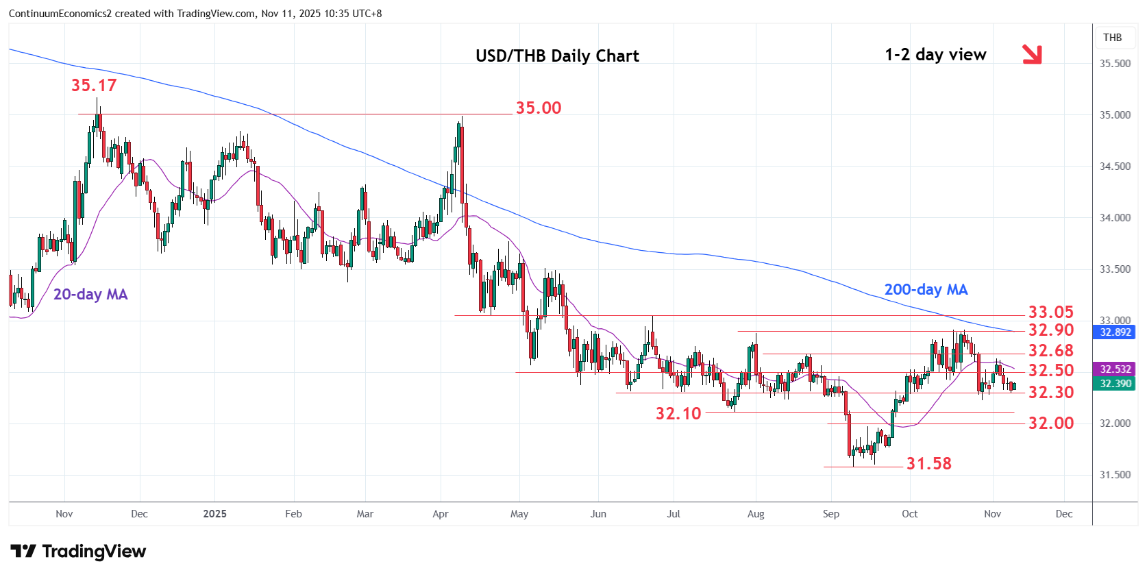 Chart USD/THB Update: Consolidating above 32.30/32.23 support