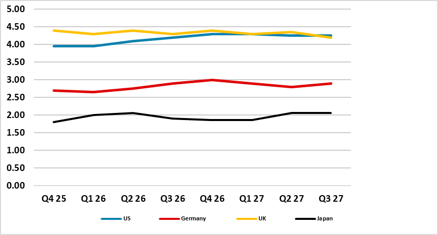 Figure 3: 10yr Government Bond Yield Forecasts – Major DM’s (%)
