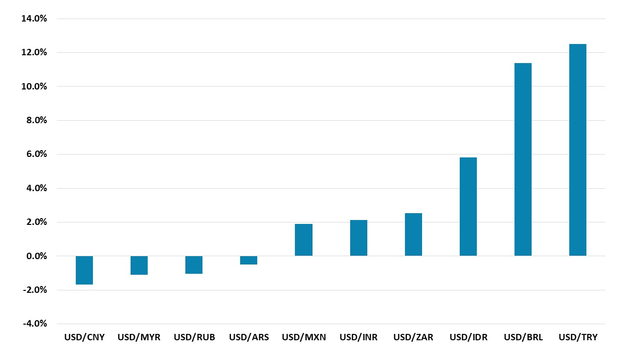 In the EM FX arena, the USD has stabilized rather than seen a partial recovery. Nevertheless, renewed uncertainty with a likely Supreme Court part or full ruling against Trump’s reciprocal tariffs will likely cause some volatility on EM currencies, with small nominal and real yield differentials against the USD e.g. India Rupee (INR) and Indonesian Rupiah (IDR). A correction can also be seen in the Mexican Peso (MXN) in H1 2026, as Trump pushes aggressively for a reset USMCA deal. The Brazilian Real (BRL) will be less impacted, as nominal and real interest rate differentials remain large, though some softening can be seen into October Brazilian presidential election. The Chinese Yuan (CNY) will likely consolidate in 2026, as the trade truce with the U.S. will be difficult to turn into a positive and comprehensive trade deal (here). For 2026 as a whole, we still likely the BRL on a total return basis (Figure 6), as the Turkish Lira (TRL) gains will likely be volatile at times.