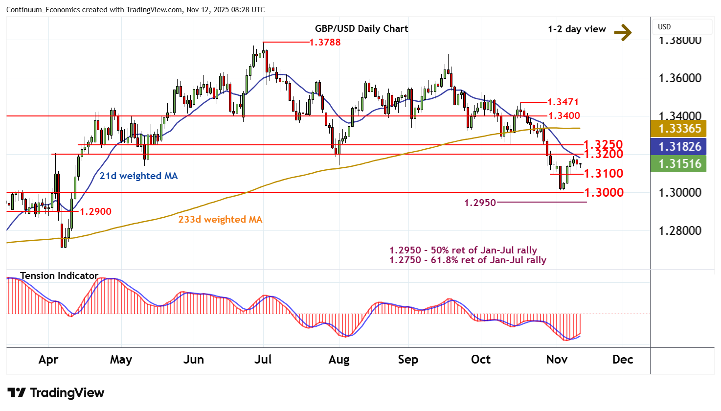 08:10 GMT - The anticipated minor test lower has bounced from above support at the 1.3100 break level, with prices currently trading around 1.3150. Daily readings continue to rise, suggesting room for a test of congestion resistance at 1.3200. But mixed/negative weekly charts are expected to prompt renewed selling interest around here and limit any break in renewed selling interest beneath further congestion around 1.3250. Meanwhile, a break below 1.3100 would add weight to sentiment and open up congestion support around 1.30000. Flat oversold weekly stochastics should limit any immediate tests in consolidation.