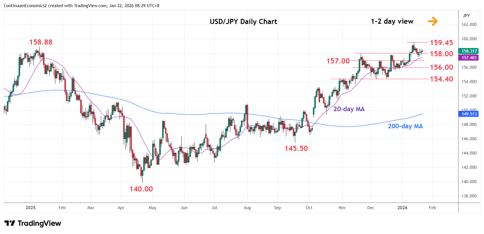 | R2 | 159.45 | ** | 14 Jan YTD high | S3 | 156.00 | * | congestion | |