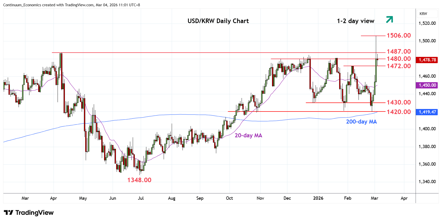 Chart USD/KRW Update: Consolidating spike to 1506.00 high