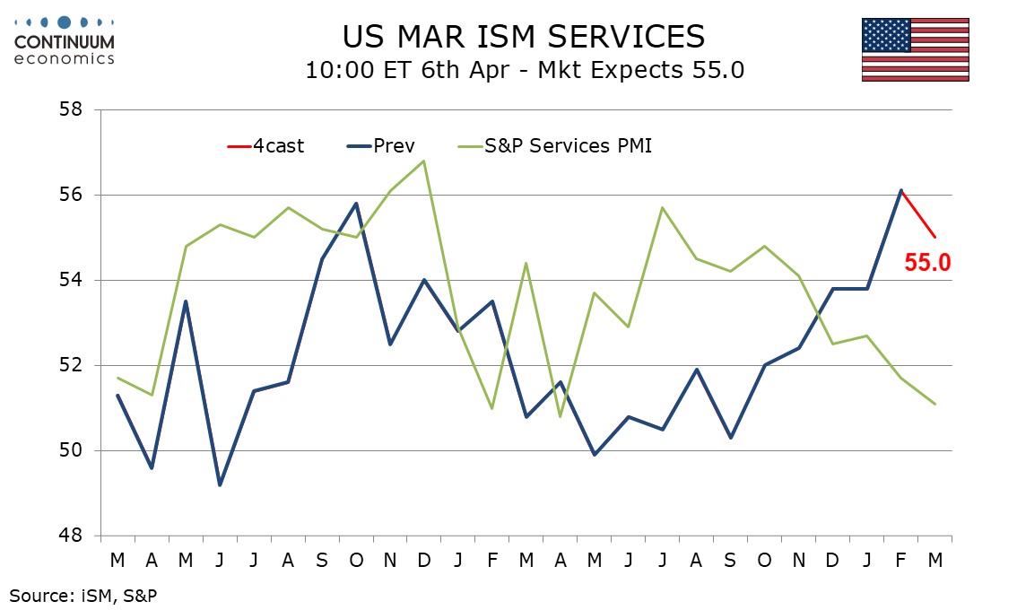 Preview: Due April 6 (rescheduled from April 3) - U.S. March ISM Services - February strength difficult to sustain