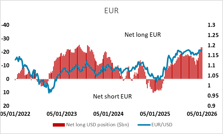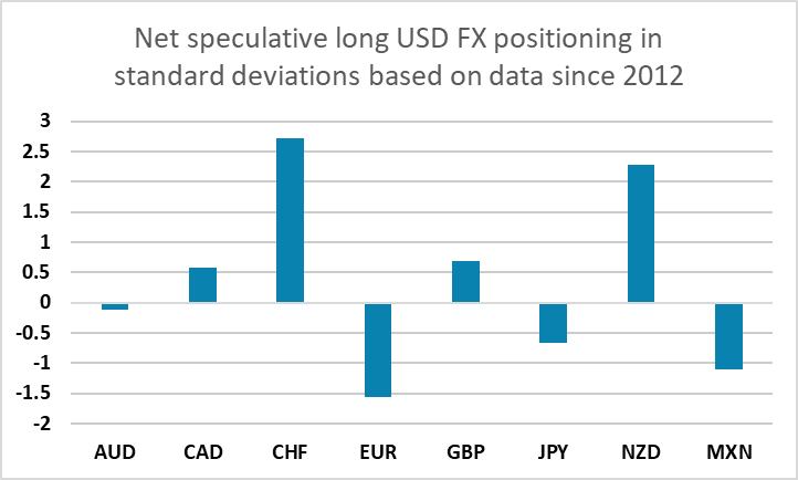 Net speculative positioning is very short CHF, long EUR. Long EUR position highest since July 2023