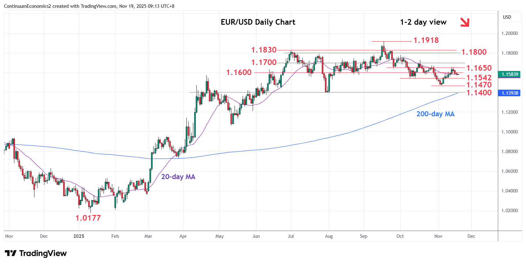 Chart EUR/USD Update: Edging lower from 1.1650 resistance