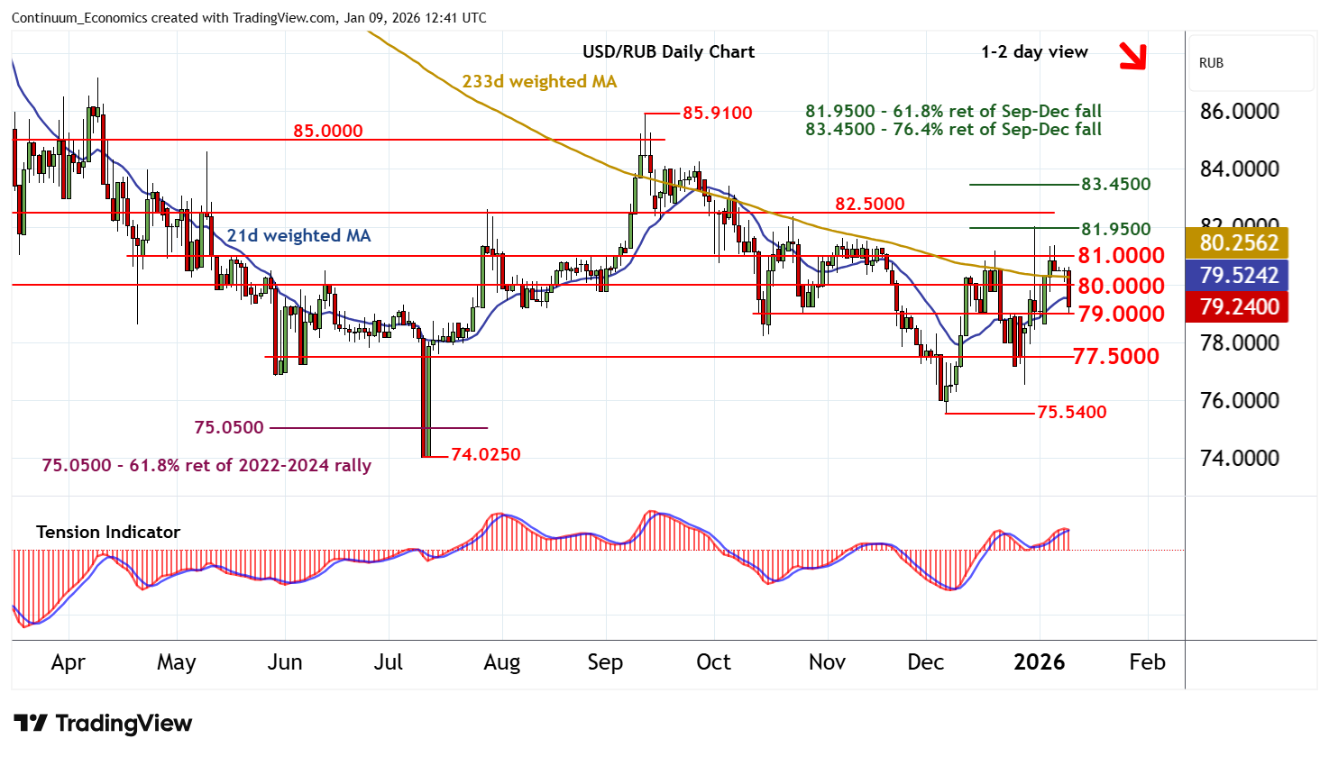 | R1 | 80.0000 | ** | congestion | S4 | 75.0500 | ** | 61.8% ret of 2022-2024 rally |