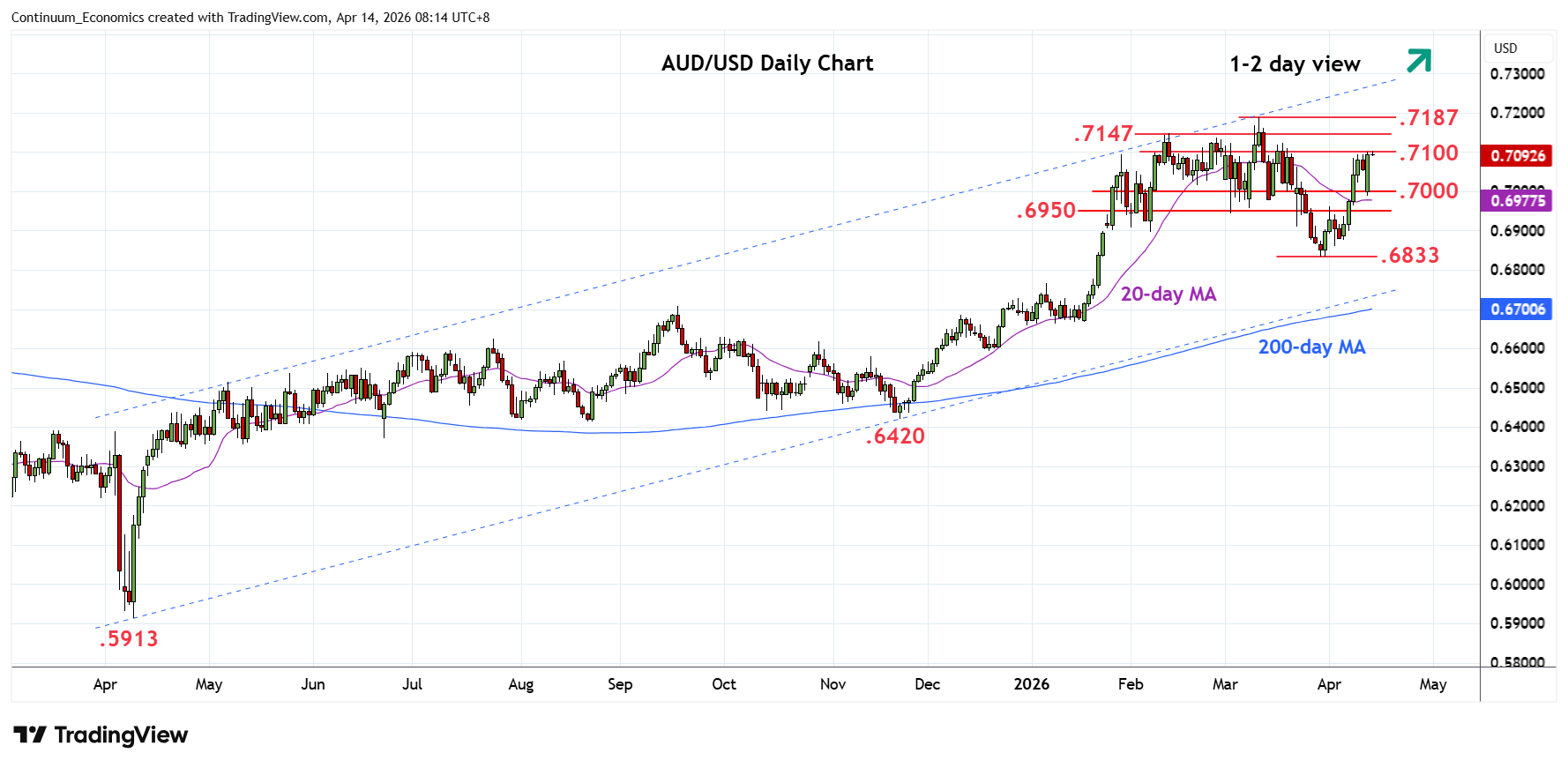 Chart AUD/USD Update: Pressuring .7100, scope for break