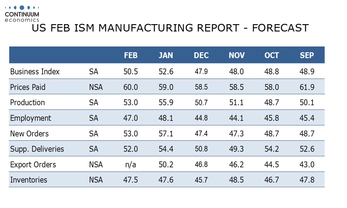 Preview: Due March 2 - U.S. February ISM Manufacturing - Correcting lower but still positive