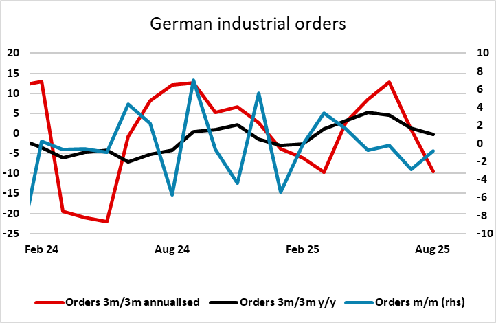 Given the lack of official US data, there may be more interest than usual in the IBD/Tipp economic sentiment index for October due on Tuesday, although the recent trend has been quite flat so a big impact is unlikely. Other than that, we had strong leading indicators and household spending from Japan and French trade data showing a slightly larger than expected deficit, while German August factory orders disappointed once agan shoing their fourth straight decline, all of which supports a weaker EUR/JPY.
